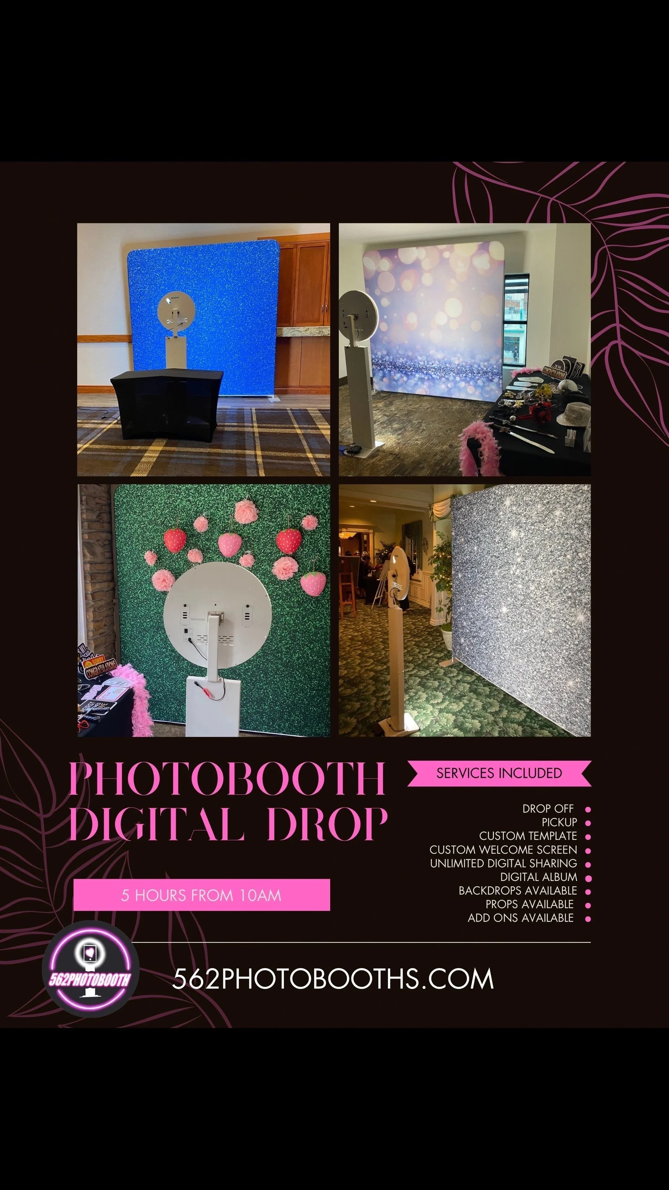 Ready to make your event the talk of the town? At 562photobooth, we’ve got the perfect photobooth experience for every occasion—big or small, budget-friendly, or all-out luxe. From hassle-free drop-offs to full-service fun with an attendant, plus customizable backdrops and photo strips that make your event memorable, we’re here to turn snapshots into lasting keepsakes. Explore our services below and find the package that fits your vibe—because every celebration deserves a little extra snap!